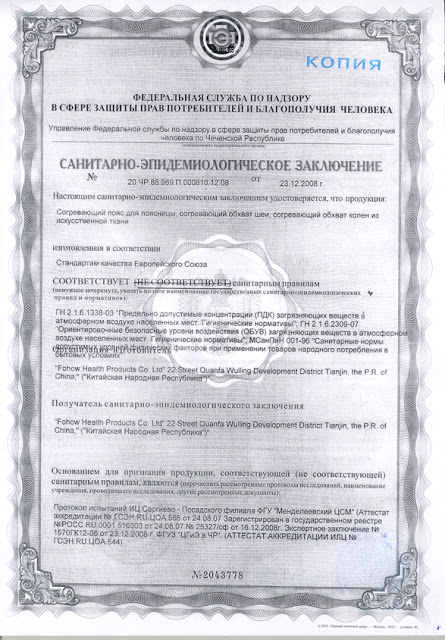 Сертификат на фарадотерапевтический пояс