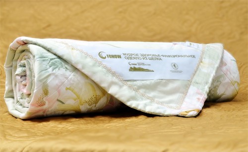 2. Шелк (silk) изготавливается из «шелковой жидкости», выделяемой тутовым шелкопрядом при плетении кокона, которая в последствии застывает и превращается в непрерывную длинную нить. Является одним из первых волокон животного происхождения, используемых человеком. Природный шелк – это легкое, мягкое, тонкое натуральное волокно, известное в мире как «вторая кожа человека», а в профессиональной сфере как "Императорское волокно". Натуральный шелк – тончайшее природное протеиновое волокно, структура шелковых волокон на 87 % близка к структуре кожи человека; содержит необходимые организму человека аминокислоты, обладает уникальными свойствами абсорбировать влагу и регулировать температуру в зависимости от сезона и температуры окружающей среды. Шелк - это уникальный материал, из которого производят эксклюзивные вещи высшего качества. Шелк считается качественным и ценным природным ресурсом. Шелк, входящий в состав одеяла, мягкий и приятный, обладает высокой степенью воздухопроницаемости, отлично сохраняет тепло, не вызывает раздражения, обладает антистатическими свойствами, очень комфортный в использовании.