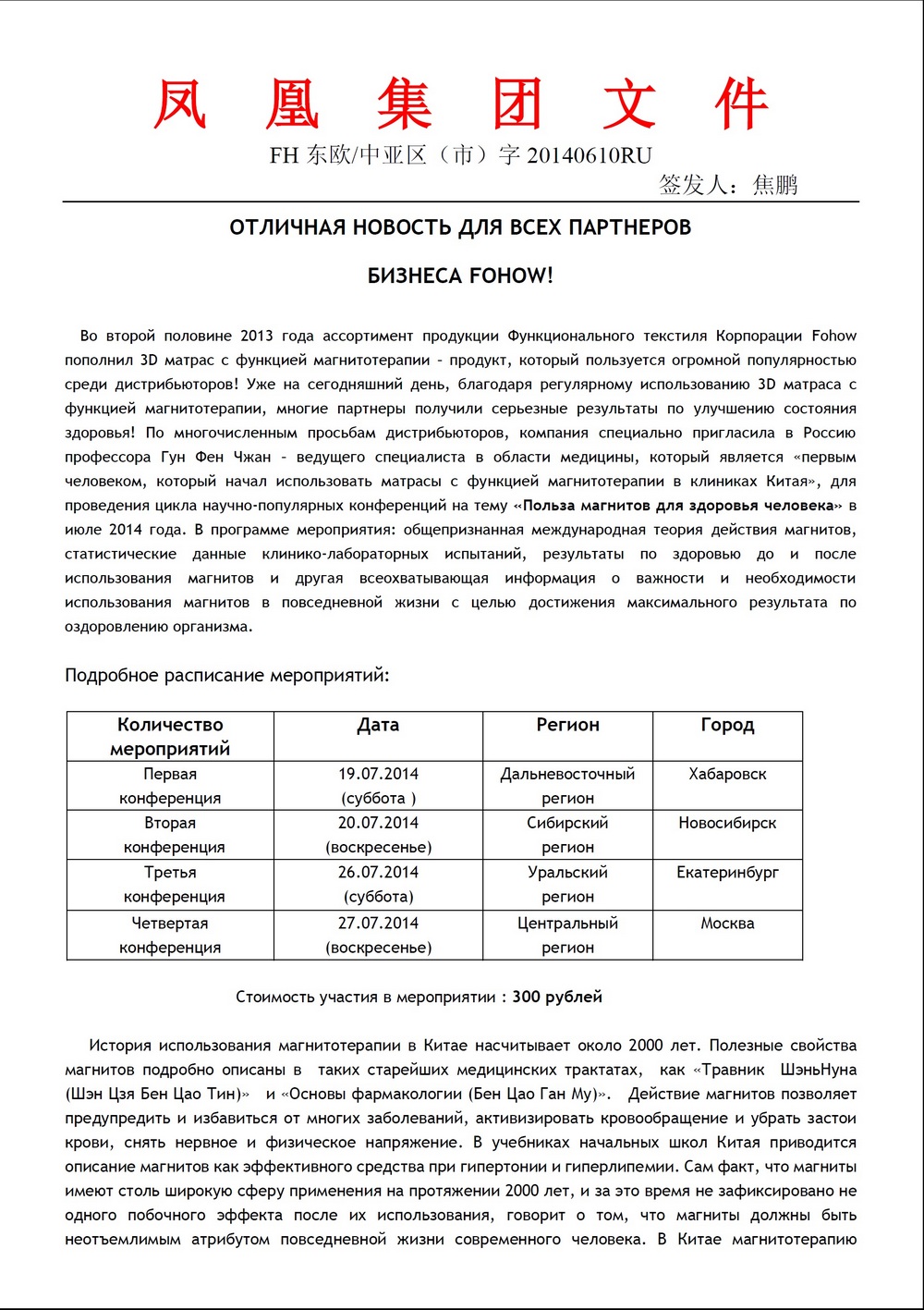 3D матрас с функцией магнитотерапии - конференция FOHOW